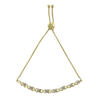 Haus of Brilliance 10K Yellow Gold over Silver 1/10 Cttw Diamond Heart and X-Link Bolo Bracelet
