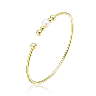 Guili Gold Plated Sterling Silver Bangle Bracelet with Freshwater Pearl, Offering a Simple and Classic Accent to Any Elegant Outfit