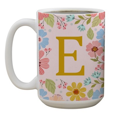 Personalization Mall Flowery Initial Personalized Coffee Mug Gold/Pink