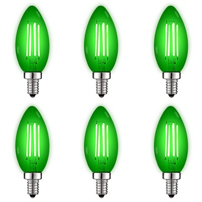 Luxrite E12 LED Filament Green Light Bulbs, 4.5W (40W Equivalent), Colored Glass Candelabra Bulb, UL Listed, E12 Base, Indoor Outdoor 6 Pack