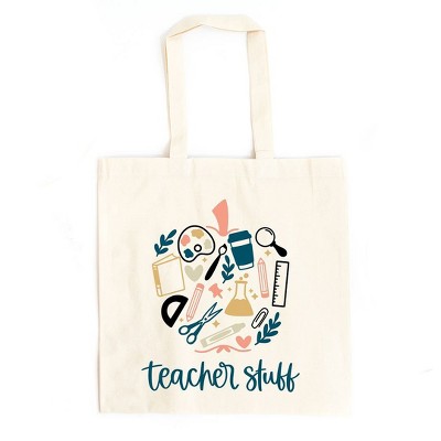 City Creek Prints Teacher Stuff Collage Canvas Tote Bag - 15x16 - Natural