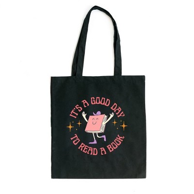 City Creek Prints It's a Good Day to Read a Book Canvas Tote Bag - 15x16 - Black