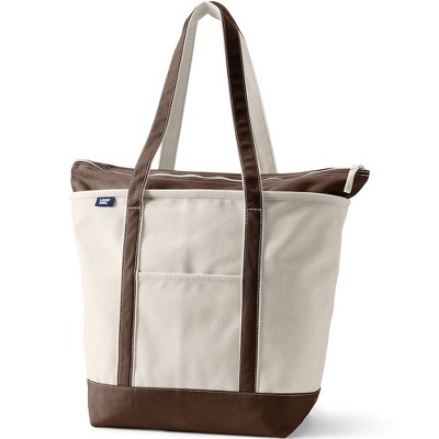 Lands' End Zip Top Long Handle Canvas Tote Bag