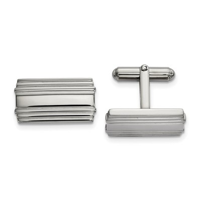 Black Bow Jewelry Stainless Steel Grooved Border Rectangle Cuff Links, 19 x 13mm
