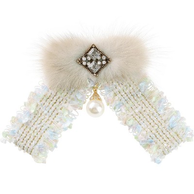 INSPIRE CHIC Women's Bowknot Multicolored Braided Tweed Ribbon Furry Brooch Ties