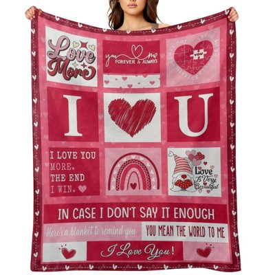 Lomsoe Red Rose and Love Element Theme Flannel blanket, Ideal for Couples, Bed, Sofa. Valentine's Day Gift.Wedding Anniversary Gift.