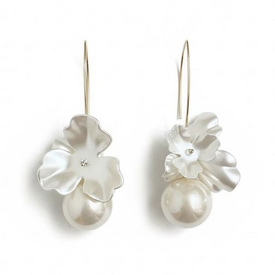Dangle Pearl Drop Earrings Trendy Long Threader Chain Dainty Flower Wedding Earrings For Brides CZ