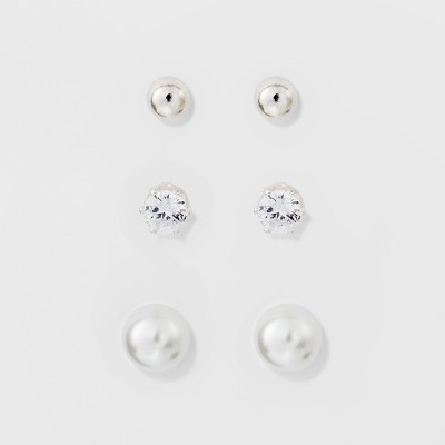 Rhodium Classic Hoop Earring Set 3pc - A New Day™ Silver
