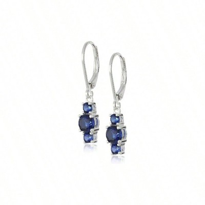 Bella Silver Sterling Silver 6MM Sapphire "September" Swarovski Element Earrings - Blue