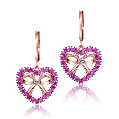 Elegant 18K Rose Gold Plated Heart Dangle Earrings with Radiant Ruby Cubic Zirconia – A Stunning Accessory for Adding Charm and Sophistication.