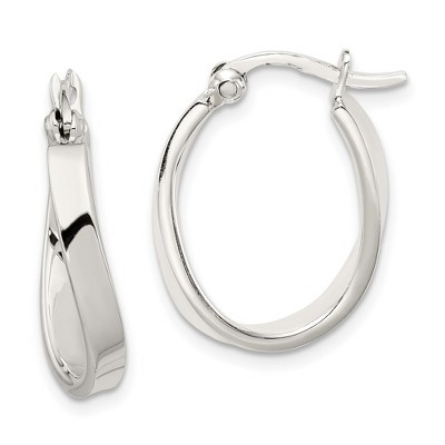 Black Bow Jewelry Twisted Oval Hoop Earrings in Sterling Silver - 20mm (3/4 Inch)
