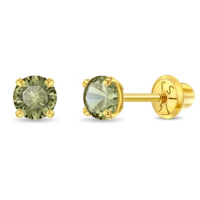 Girls' Pronged Simulated Birthstone Screw Back 14k Gold Earrings - In Season Jewelry