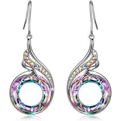 Phoenix Earrings Austrian Crystal Sterling Silver Pendants Luck & New Life Symbols