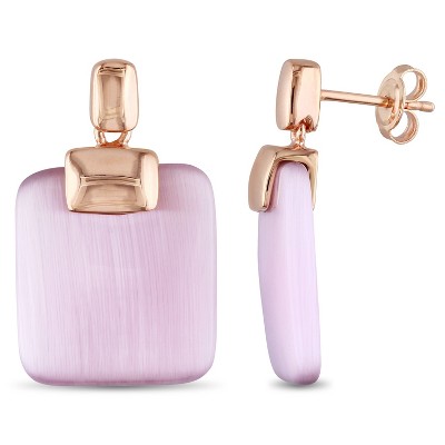 EVERLY JEWELRY | Rose Plated Sterling Silver Light Purple Simulated Cat Eye Cabochon Gemstone Earrings
