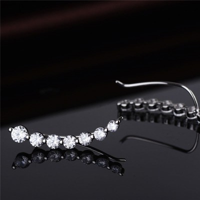 Amy and Annette 14K White Gold Plated Earring Crawler Climber with Crystals