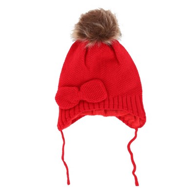 CTM Girl's One Size Fits Most Knit Winter Beanie with Pom Bow and Ear Flaps