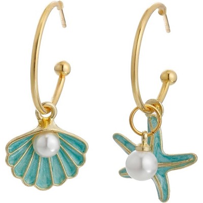 Shell Hoop Earrings, Asymmetric Shell and Starfish Earrings Seashore Hoop Earrings Beach Jewelry
