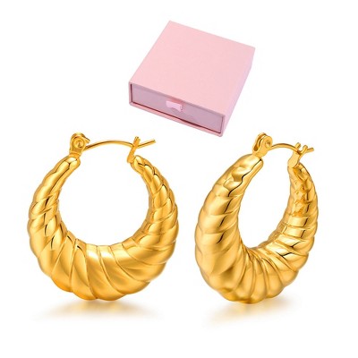 sanctuaire Statement Hammered Hoop Earrings Gold