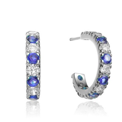Guili Sterling Silver Hoop Earrings with Green, Red & Blue CZ – Colorful Sparkle in a Sleek Silhouette for Everyday Style and Elegance