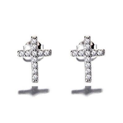 Sterling Silver Cross Stud Earrings with Crystals