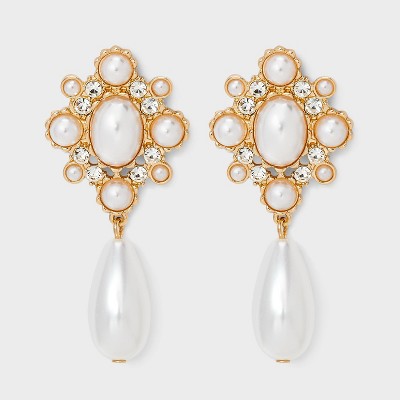Gala Pearl Drop Earrings - A New Day™ Pearl/Gold
