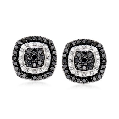 Black Bow Jewelry 1/4 Ctw Black Diamond Love Knot Omega Back Earrings in Sterling Silver