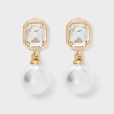 Classic Pearl Drop Earrings with Stone Post - A New Day™ Gold
