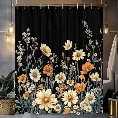 Soscooter Floral Bouquets Polyester Bathtub Shower Curtain Window Curtain Room Divider Water Resistant Bathroom Decor 70.8x70.8Inch