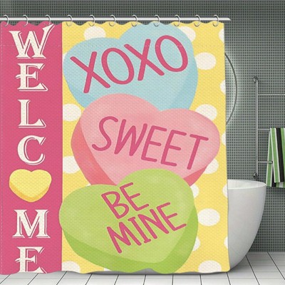 Valentine's Day Colorful Candy Hearts 'Welcome' Shower Curtain - Waterproof Polyester, Soft & Durable 70.8x70.8Inch