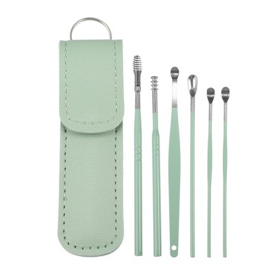 Unique Bargains Stainless Steel Ear Cleansing Tool Set Ear Care Set with Faux Leather Packaging 6 Pcs