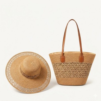Anna-Kaci Women's Straw Sun Hat & Tote Bag Set, Wide Brim Beach Hat with Woven Summer Handbag