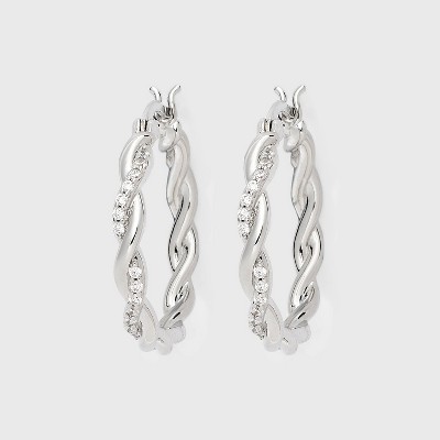 Silver Plated Cubic Zirconia Twist Hoop Earrings - A New Day™ Silver