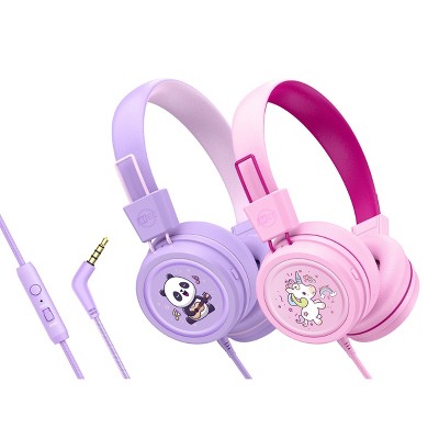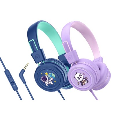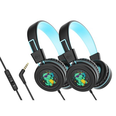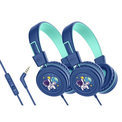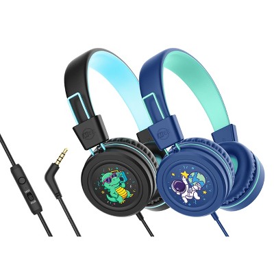 MEE audio KidJamz KJ55AUX (2 Pack) 3.5mm Safe Listening Kid's Headphones with Headset & Color Graphics