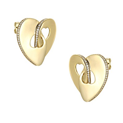 Chisel Stainless Steel Polished Yellow IP-plated White Zircon Dangle Hinged Hoop Earrings