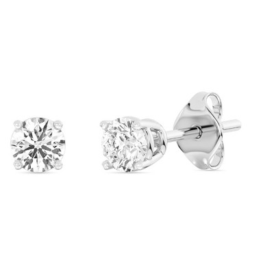 Bella Silver Sterling Silver 6mm Set of 3 Round Clear, AB, and Rainbow CZ Stud Earrings - Multi