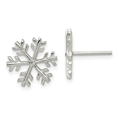 Black Bow Jewelry Sterling Silver Polished Snowflake Post Earrings with Cubic Zirconia