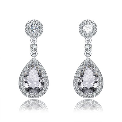 Guili Sterling Silver Pear Drop Cubic Zirconia Earrings with Circle Post or White Gold Plating for a Chic, Sophisticated, and Graceful Radiance