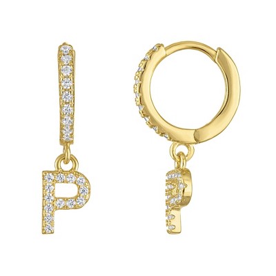 Junior Jewels 14K Gold Over Silver Cubic Zirconia Initials Drop Earrings