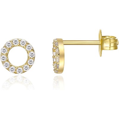 14K Gold Plated 925 Sterling Silver Post Pave Cubic Zirconia Huggie Hoop Earrings for Women