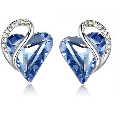 Leafael Infinity Love Heart Stud Earrings with Birthstone Crystal Women's Gifts, Silver-tone
