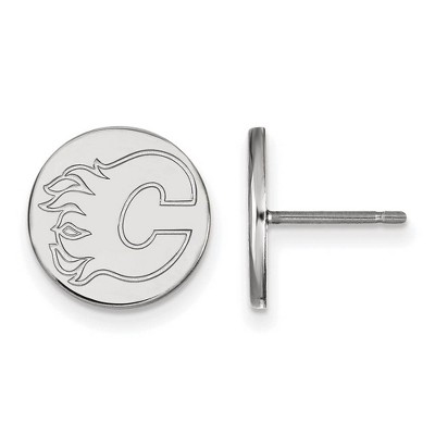 Black Bow Jewelry Sterling Silver Calgary Flames NHL Small Disc Stud Earrings