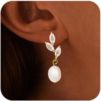 Pearl Earrings for Women Trendy, 14k Gold Plated Freshwater Bridesmaid Wedding Gold Jewelry for Women Gifts