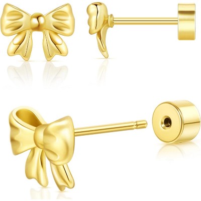 Solid Gold Stud Earrings with Cubic Screw - Back, Gift Box
