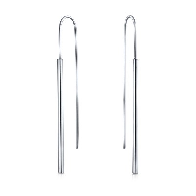 Bling Jewelry Minimalist Geometric Dangle Earrings Linear Bar Threader in Sterling Silver
