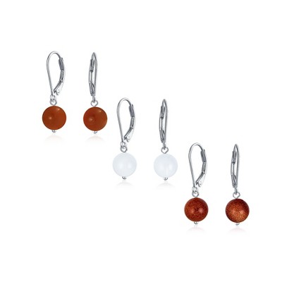 Bling Jewelry Set of 3 Simple Natural Stone 8MM Ball Drop Earrings Sterling Silver Leverback