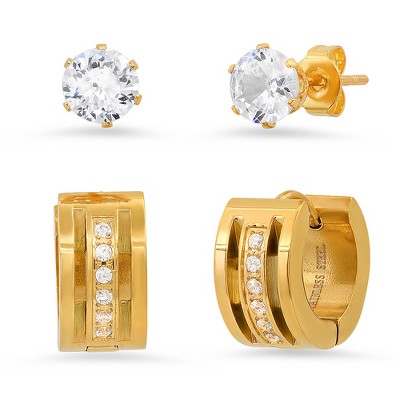 14K Gold Plated Hoop Earrings Set: Chunky CZ Hoops & Dainty Studs for Women