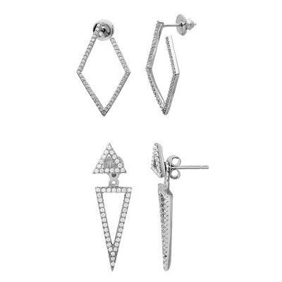 Adornia Silver 2-Piece CZ Jacket and Hoop Earring Set