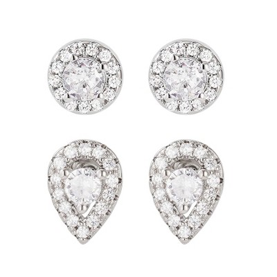 Adornia Silver 2-Piece Halo CZ Earring Set
