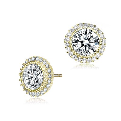 Guili Sterling Silver Rhodium or 14K Gold Plated Clear Round Cubic Zirconia Milgrain Halo Stud Earrings for a Stunning Shine and Exquisite Radiance