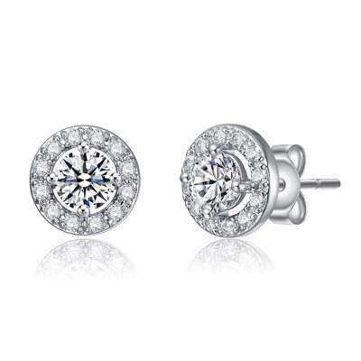 Luxurious and Elegant Platinum Plated Halo Stud Earrings with Sparkling Cubic Zirconia for a Timeless and Radiant Look